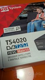 Vendo Decoder Satellitare e Digitale Terrestre Telesystem TS4020 DV3 T2/S2 HEVC MAIN 10, completo di tutti gli accessori (scatola, telecomando, alimentatore).