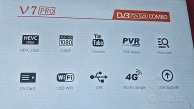 Vendo decoder GTMEDIA V7 PRO in ottime condizioni, perfettamente funzionante. 🔹 Supporta DVB-T2 & DVB-S2 (combo: digitale terrestre + satellitare)🔹 Risoluzione Full HD 1080p🔹 Compressione H.265 (HEVC)🔹 Display frontale con canale visibile🔹 Slot per smart card (CA)🔹 Facile da installare e usare