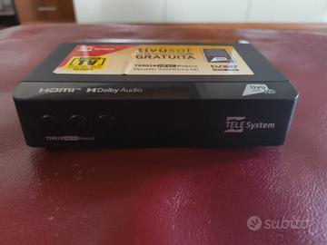 Vendo decoder satellitare Telesystem perfettamente funzionante. È compresa lasmartcard tivusat hd e tutte le componenti per l'uso (alimentatore, cavo hdmi e telecomando). Purtroppo non dispongo dello scatolo originale
