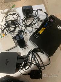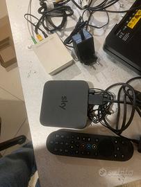 Decoder rete sky completo di modem/router sky ,centralina collegamento fibra ottica, cavo hdmi,cavo rete, cavo telefonico,cavo fibra ottica ,tre alimentatori, Telecomando retroilluminato.