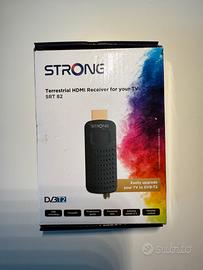 Vendo decoder Strong SRT 82, ricevitore DVB-T2 compatto con ingresso HDMI, perfetto per aggiornare qualsiasi televisore alla nuova tecnologia del digitale terrestre.