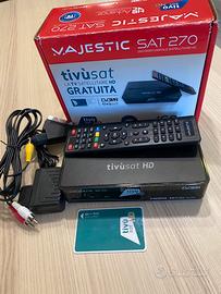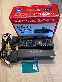 Vendo decoder satellitare Majestic SAT 270.Certificato Tivusat/Dazn.Perfetto pari al nuovo e perfettamente funzionante.Nel suo imballo originale completo di Alimentatore,Telecomando e card Tivusat già attiva.Prezzo intrattabile
