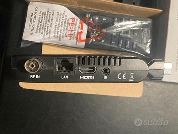 Decoder digitale terrestre T2 HEVC H.265 - 10-bit retro TV rotazione 180°, completo di tutti gli accessori con imballo e manuale istruzioni, usato molto poco per acquisto nuovo televisore. Spese spedizione a carico acquirente.
