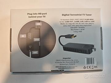 Vendo per errato acquisto decoder Mini Deko ultra-compatto. Si installa direttamente dietro la TV tramite porta HDMI, rimanendo invisibile. DVB-T2 H.265 HEVC Come nuovo, con scatola originale.