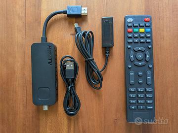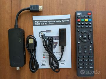 Decoder Stick H.265 HEVC 10 bit PVR Recorder Ingresso cavo antenna, uscita HDMI 1080P Ricevitore con funzione registrazione programmi Alimentazione da USB Compatibile ultimo standard TV, sintonizza tutti i canali disponibili. Condizioni pari al nuovo, mai usato. Disponibile sino a quando è presente l'annuncio, solo scambio a mano.
