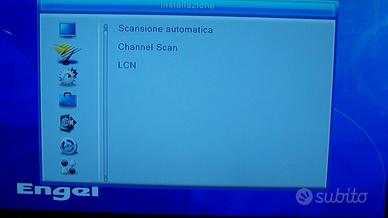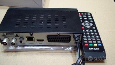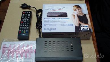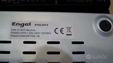 Decoder tv Engel RT6120T2 con telecomando,scatola e libretto. Il decoder ha ancora la pellicola nella parte frontale. Funzionante vedere foto menu, e canale tv essendo T2 è compatibile con l'attuale sistema di segnale televisivo. Il decoder può registrare da porta usb frontale inserendo usb key (chiavette usb) oppure HD. Il decoder può essere collegato a tutte le tv perchè ha entrambe le uscite HDMI e Scart.