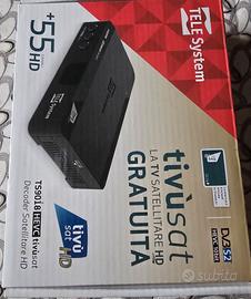 VENDO PER CAMBIO CASA KIT SATELLITARE TV SAT IN PRATICA NUOVO, UN ANNO DI VITA PERFETTAMENTE FUNZIONANTE IL QUALE PERMETTE DI RICEVERE SENZA ALCUN PROBLEMA TUTTI I CANALI DEL DIGITALE TERRESTRE, IN PIU' QUELLI DEDICATI A TV SAT TUTTI IL ALTA DEFINIZIONE. IL KIT E' COMPOSTO DA DECODER TV SAT TELE SYSTEM MODELLO TS9018 HEVC HD CON SCHEDA TV SAT COMPLETAMENTE GRATIS, BASTA REGISTRARSI CON IL NUMERO DELLA SCHEDA ONLINE IL TUTTO GRATUITO, PARABOLA METRONIC DA 80 CM CON CAVO SATELLITATE DI 10 METRI COMPRESO, DOPPIO ATTACCO PER FISSAGGIO SU PALO O MURO, E' STATO COMPRATO A PARTE UNA STAFFA DI 45 CM SEMPRE COMPRESA NEL KIT, PREFERISCXO LA CONSEGNA A MANO PER FARE VEDERE CHE LA PARABOLA E IL DECODER SONO IN PRATICA NUOVI.