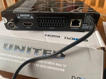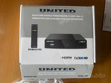 Ricevitore digitale terrestre DVB-T2 HEVC Main 10 per la TV in alta definizione, come nuovo imballato come in origine di acquisto cambia solo che mancano le pile al telecomando, vendo per inutilizzo.