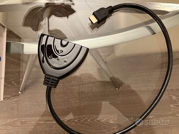 deleyCON Switch HDMI a 3 porte automatico Amplificatore HDMI integrato Compatibile HDMI 1.4a Compatibile con 3D fino a 1080p 3x ingressi HDMI 1x uscita HDMI Commutazione tramite pulsante sullo switch Nessun alimentatore richiesto Compatibile HDCP Contatti placcati oro 24 carati Per passare comodamente da 3 dispositivi sorgente HDMI a un televisore Risoluzione supportata: 720i, 720p, 1080i, 1080p (3D) Custodia in plastica di alta qualità e prese in metallo per una protezione ottimale contro le interferenze Funzioni: Amplificatore HDMI installato : ottiene il massimo dal segnale fino a 1080p (3D). Ciò significa che è sempre garantita un'immagine brillante a 1080p (3D) . Pulsante di commutazione manuale: per passare manualmente da un dispositivo all'altro 3x ingressi HDMI: per collegare fino a 3 dispositivi HDMI (ad es. ricevitore Sky, ricevitore TV, lettore DVD, Sony Playstation 4, Blu- Ray, Blu-Ray, Blu-Ray 3D, videocamera, X-BOX®, PC, notebook, ricevitore satellitare, ecc.) LED funzione: mostra quale dispositivo è attualmente attivo. 1x uscita HDMI: per il collegamento tramite HDMI all'ingresso della vostra TV LCD/TV al plasma/TFT/proiettore/proiettore/ tutti i televisori Samsung, LG, Toshiba, Sony, Panasonic ecc. Compatibile con tutti i proiettori ACER, BENQ, Philips, Samsung, Epson.