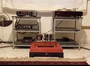 Vendo base porta elettroniche Demaudio Gravity Platform Made in Italy in perfetto stato. Da me usata per amplificatori finali a stato solido come Mark Levinson e Plinius (vedi foto), Spectral, ma anche finale valvolare Beard, Conrad Johnson e altri e per giradischi e componenti audiophile sensibili alle vibrazioni. Caratteristiche: •dimensioni 45 x 55 cm – compatibile con la maggior parte dei componenti hi-fi; •ripiano costituito da tre strati e impiallacciato legno tanganika tinta Red Violin; •strati del ripiano isolati tra loro con una fibra a cellula chiusa; •sistema meccanico antivibrazioni con materiale brevettato costituito da traverse del telaio in alluminio, raccordi cubici realizzati in 3d e isolati al pavimento e al ripiano. Sistema adatto a migliorare le prestazioni dell’impianto audio, studiato per garantire massima stabilità meccanica e riduzione delle vibrazioni indesiderate. Progettato e realizzato con cura artigianale per un supporto solido, ma anche un miglioramento acustico tangibile. Prezzo di listino 800,00 euro. VENDO a 450,00 euro, inclusa nel prezzo una seconda base con finitura antracite (vedi ultima foto). Costi di spedizione da valutare in accordo con l’acquirente. Valuto EVENTUALI permute.