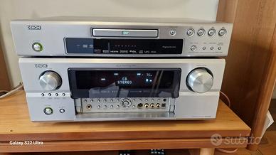 Vendo impianto della Denon sintoamplificatore avr 3805 + dvd modello DVd-1940 super audio cd (sacd) legge di tutto.Condizioni immacolate comprensivi di telecomandi di cui 1 non originale ma compatibile al 100%.Il sinto è provvisto di scatolo e manuale + microfono di calibrazione .Non effettuo spedizioni solo ritiro a casa dopo visione.Solo il dvd 1940 vale oltre le 200 euro completo di telecomando originale