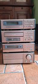Ottimo sistema Denon D100 old school composto da amplificatore UPA-100 40+40 watt RMS 20hz-20khz, sintonizzatore UTU-100, lettore CD UCD-100 e tape UDR-100 impianto dal suono strepitoso in ottime condizioni e perfettamente funzionante a parte l'apertura del cassetto CD che necessita di revisione vendo a 200 euro. I diffusori canton visibili in foto non sono in vendita.