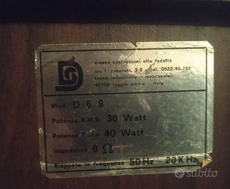 Casse acustiche DIESSE modello D/6/8 Tre vie e ottime prestazioni. Dimensioni cm. 30*48*24 Spedizione costosa per il volume del pacco.