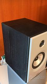 Diffusore Iconico, introvabile. Adatto ad ambienti inferiori ai 25 mq. Il loro punto di forza e’ sicuramente la riproduzione delle basse frequenze che e’ paragonabile a diffusori di dimensioni maggiori. Il dettaglio e la presenza scenica sono eccezionali. Adatto come diffusore stereo o come canali frontali di un sistema home theatre. Qualita costruttive incredibili. Da nuove costavano 3500 €. Compatibili con Accouphase, Purifi, Hegel, kef, ATC