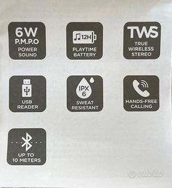 Vendo a prezzo modico piccolo ma potente Diffusore Aiwa Wireless con Bluetooth e Radio e funzioni telefono nuovo.Il Diffusore è in confezione originale solo aperto per recensione e controllo funzionamento,fornito di istruzioni e cavo per ricarica.