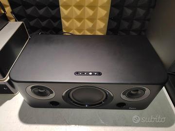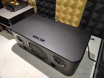 Grazie a Parrot BOOMBOX è possibile realizzare un impianto Hi-Fi di buona qualità, con pochissimo ingombro sfruttando tutti i moderni dispositivi digitali per l’ascolto della musica, partendo dai lettori MP3 fino ai cellulari di ultima generazione. Sistema audio bass-reflex ad alte prestazioni Tre altoparlanti: 2 banda larga, 1 woofer Risposta in frequenza: 50Hz – 20 Khz Decodificatore SBC ed MP3 incorporato Software PC su CD: regolazioni e aggiornamento Amplificazione digitale: Cladd-D tipo 2.1 Potenza totale: 60W Interfaccia utente a 3 tasti Regolazioni: volume – attenuazione dell’audio (mute) Ingresso ausiliario Line-In di tipo RCA Sorgente Bluetooth: Telefono cellulare Bluetooth A2DP; PC Bluetooth A2DP Usato pochissimo in ottimo stato valore nuovo 229
