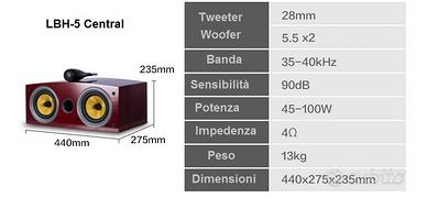 Diffusore centrale costituito da due speaker da 5,5" in Kevlar e un tweeter in seta da 1", lo stesso montato sui diffusori più noti LBH-10, sempre in vendita qui, caricamento Reflex sul frontale.