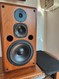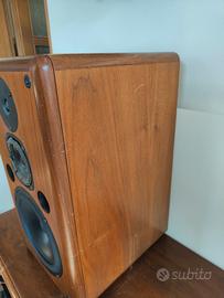 Singolo diffusore vintage ESB Gold Three, made in Italy, ottima base per restauro o ricambi. Si tratta di una singola cassa (NON coppia). Il diffusore è completo e in buone condizioni generali, funzionante e acustica favolosa ma presenta alcuni difetti da segnalare: Foam del midrange da sostituire (come visibile in foto) Qualche segno e abrasione sul mobile in legno Woofer e tweeter in ottimo stato Tutti e 3 gli altoparlanti sono Funzionanti (non bruciato) Griglia frontale presente, con tutti i ganci integri; manca solo la scritta ESB sulla tela. Mobile in vero legno molto bello e solido, tipico delle produzioni ESB anni ’80/’90. Ideale per: restauro completare una coppia appassionati hi-fi vintage Caratteristiche: Sistema a 3 vie Reflex frontale Doppi morsetti posteriori per pilotaggio separato Possibilità di visione e prova. Preferibile ritiro a mano in alternativa spedizione Contattami per info o foto aggiuntive.