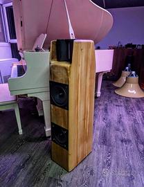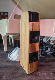 Bellissimo diffusore in legno massello con il famosissimo tweeter Ess Great Heil AMT e doppio woofer da 16 cm Epos (marchio nato come divisione di lusso di Sennheiser) in camere di risonanza separate, caricamento bass reflex posteriore. Cinfiguraziine ideale per bi-amplificazione. Valuto permute a mio favore.