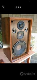 Si tratta di una coppia di diffusori a 3 vie sospensione pneumatica , con woofer di 24 cm circa , dimensioni esterne di 59 cm altezza , 30 profondità , 35 cm larghezza , con una stupenda costruzione in legno con finitura noce e palisandro veramente bella. Di cosa si tratta: Diffusore a 3 vie Produttore: Thosiba Caratteristiche: 20-40 watt Un sistema di altoparlanti che impiega un'unità concava di nuova concezione. Un woofer a cono da 25 cm è installato nella gamma bassa e uno squaker a cono da 12 cm è installato nella gamma media. La tecnologia Cone Cave è stata incorporata in queste unità. Questo è un uso positivo della parte che era un tappo antipolvere nell'unità convenzionale. Utilizzando un diaframma concavo costituito da una miscela di fibre chimiche speciali, il disturbo dell'alta frequenza viene soppresso e il suono fangoso vicino al crossover viene impedito. Un tweeter a cupola da 3 cm è installato nella gamma alta. Dotato di controllo del livello di commutazione a 3 stadi per la gamma media e alta. L'involucro è sigillato ermeticamente. Oltre al normale terminale di ingresso, è montato il terminale per multi-amplificatore ed è possibile un azionamento multi-amplificatore a 2 o 3 vie.