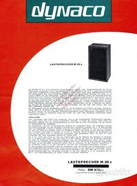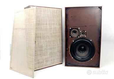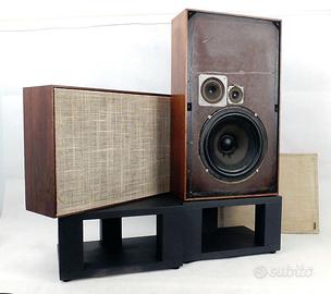 Vendo eccellente coppia di diffusori acustici Dynaco M25x nella rara versione "Flat" bookshelf. Si tratta di un modello prodotto in quantità limitata, rispetto alla 25 classica, con cui condivide tutti i componenti, a cominciare dall'ottimo woofer 10' Seas. Naturalezza e trasparenza sonora le qualità piu rilevanti. Nati per essere bensuonanti anche inseriti in libreria o appesi a parete. Notevoli col jazz o la musica acustica in genere. •Condizioni Estetica molto buona, cabinet in legno ben conservato e componenti originali al 100%. Ripristino e ceratura eseguiti recentemente •Caratteristiche Design pneumatico con woofer da 10' (SEAS), tweeter e midrange a cono, ideali per ascolti prolungati senza fatica •Suono Bassi frenati e naturali, medi caldi e dettagliati. Perfette in abbinamento ad amplificatori di qualità •Note Griglie originali incluse e stand realizzati da artigiano locale, altezza stand 19 cm. •Ingombro cm 35 (l) x 60 (h) x 15 (p) - Kg 9 cad Grazie per la vostra attenzione. Preferibile consegna a mano se entro 40 km, previo accordo. Venite ad ascoltarli per rendervi conto delle potenzialità di questa coppia ! Spedizione possibile ma solo su bancale. Peso previsto: ca 30 Kg, chiedere per ulterori dettagli. Imperdibili, il prezzo più basso tra le offerte on line ! Non posso regalarveli ... ma, a questo prezzo, lo sto (quasi) facendo ...