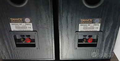 Diffusori Tannoy Mercury M2 Cherry diffusori bookshelf 2 vie, Bass Reflex, Woofer 16,5 cm & tweeter cupola da 2,5 cm. Sensibilità di 88Db, 8 Ohms, 6 Kg cadauno. Ottimi per ambienti sino a max 25 Mq. Dimensioni 20 x 38 x 27 cm. In ottime condizioni, vanno bene con qualsiasi amplificatore da 20 a 100 watt.