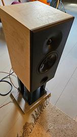 Ad autocostruttori interessati offro per pochi soldi un paio di diffusori autocostruiti a due vie bass reflex con un cabinet superlativo in multistrato di betulla da 20 mm e un baffle a doppio spessore di multistrato + MDF nero colorato in pasta. I driver utilizzati sono un tweeter Audax TW034 con guida d'onda + un woofer SEAS CA22RNY. Il crossover da me utilizzato era attuato nella sfera digitale (quindi non hanno crossover passivo a bordo) dimensioni 61 x 31 per 35 di profondità. Finiti a olio si presentano meglio di moltissimi diffusori di marca e sono in condizioni perfette, doppi morsetti per la via bassa e alta. Il cabinet originale era ispirato al progetto Quattro MK2 di Troels Gravesen al quale potrebbero anche essere riconvertiti