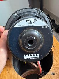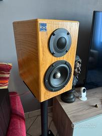 Vendo splendida coppia di diffusori passivi da scaffale/stand, realizzati a mano da un esperto artigiano veneto su progetto Ciare. Si tratta di un prodotto unico che unisce la qualità della componentistica italiana a una costruzione lignea di buon livello, superiore ai prodotti commerciali di fascia media. Caratteristiche Principali e Costruzione Le casse si presentano con una finitura in vero legno (rovere/frassino), con venature a vista. La particolarità tecnica risiede nell'accordo Bass Reflex posizionato sul fondo, una scelta progettuale che permette una gestione dei bassi molto controllata e profonda, facilitando il posizionamento in ambiente. Sono comprese punte regolabili in ottone, per il posizionamento. Specifiche Tecniche Woofer: Ciare HW 135 (Made in Italy) da 130mm, noto per la linearità e la pulizia dei medi. Tweeter: Monacor DT 254 (dome tweeter in seta, sensibilità 92 db) Crossover: Ciare HF 210 dedicato, con componentistica selezionata per una separazione delle frequenze precisa. Potenza Massima: 200W. Struttura interna: Cabinet rinforzato con materiale fonoassorbente bugnato ad alta densità per eliminare risonanze indesiderate. Terminali: Morsetti di alta qualità pronti per cavo spellato o banane. Prediligo la consegna a mano. Possibilità di prova anche con comparazione ad altre casse in mio possesso (Triangle, Kef, Elac). Ottime per abbinamento con amplificatori in Classe D (Wiim Amp, Fosi, Aiyiama, ecc) in quanto tendono a restituire un suono piu “naturale” ad ampi particolarmente precisi.