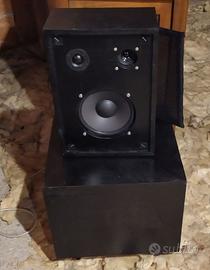 Coppia Diffusori Attivi 4 vie, 4 altoparlanti SUB: 10" in casse separate e utilizzabili singolarmente MidWoofer: 6" Midrange: 2" Tweeter: a cupola rovesciata in seta con magnete al neodimio Cross Over Analogico, 12dB/oct, Allineamento Butterworth Fc: 120 - 600 - 6.000 Hz Dimensioni: SUB: 35x35x35cm - SAT: 34x24x13