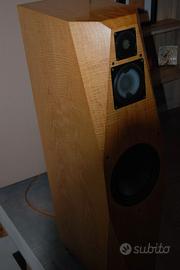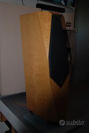 Metto in vendita una coppia di Avalon Acoustics Opus, diffusori da pavimento di alto livello, progettati per una riproduzione estremamente naturale, precisa e coerente. Si tratta di un modello iconico della casa americana, noto per la capacità di ricreare una scena sonora ampia e credibile, con una messa a fuoco molto precisa e un equilibrio timbrico raffinato. Diffusori pensati per impianti di alto livello e per ascolti attenti, senza effetti artificiosi. Condizioni Esemplari tenuti in modo maniacale: praticamente intonsi, senza segni rilevanti, sempre utilizzati con grande cura. Perfettamente funzionanti sotto ogni aspetto. Caratteristiche Sistema a 4 vie con soluzioni tecniche di alto livello: nella parte frontale è presente un woofer da 9" in Nomex/Kevlar, affiancato da un subwoofer da 9" in fibra di carbonio rivolto verso il basso, capace di estendere la gamma bassa con profondità e controllo. La gamma media è affidata a una cupola concava in ceramica Accuton da 4,5", mentre le alte frequenze sono riprodotte da un tweeter sempre Accuton da 1" a cupola in ceramica, noto per precisione e microdettaglio. La risposta in frequenza è molto estesa (circa 28 Hz – 24 kHz, con tolleranza contenuta), con una sensibilità di 87 dB e impedenza nominale di 5 ohm (minimo intorno a 4,5 ohm). Accettano amplificazioni comprese indicativamente tra 30 e 300 watt. Il cabinet, come da tradizione Avalon, è realizzato con geometria sfaccettata anti-diffrazione, pensata per ridurre le risonanze e migliorare la ricostruzione della scena sonora. Dati fisici Ingombro contenuto in circa 104 x 26 x 41 cm, con un peso di circa 43 kg per diffusore. Dotazione Punte originali Sottopunte All’epoca il prezzo di listino si collocava intorno ai 24.000 euro. Diffusori che non hanno bisogno di molte presentazioni. Contattatemi solo se veramente interessati. Prezzo da concordare.