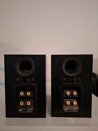 * Caratteristiche: Diffusori compatti ma potenti, noti per la loro chiarezza sonora e la riproduzione dettagliata. Perfetti come diffusori frontali principali in un sistema home cinema o per un ascolto stereo di qualità. Ogni diffusore ha un'impedenza nominale di 8 ohm e una potenza nominale di 100W. I terminali bi-wiring (HF e LF) offrono flessibilità di collegamento.