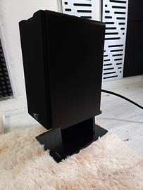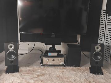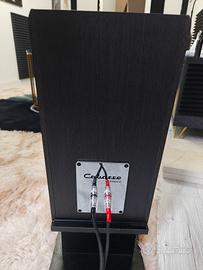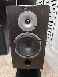Cabasse MT31 Antigua Wenge (coppia) Cabasse presenta una nuova versione della sua rinomata serieMT30, introducendo un trasduttore per le medie e alte frequenze completamente inedito. Il Cabasse MT31 Antigua incorpora l'innovativo tweeter DOM37, caratterizzato dalla sua cupola realizzata con una pellicola termostatica PEEK di nuova concezione. La resistenza meccanica e termica del materiale, unita al suo profilo sottile, ha fornito agli ingegneri Cabasse validi argomenti per garantire una riproduzione del suono costante in tutte le condizioni di ascolto. Il profilo a tromba che ospita il tweeter DOM37 migliora la sensibilità alle frequenze medie e offre un palcoscenico sonoro più ampio. Il Cabasse MT31 Antigua è quindi un diffusore da scaffale ancora più potente del suo predecessore, di cui conserva l'architettura. Tuttavia, ci sono alcune differenze: il crossover passivo beneficia dei progressi tecnologici sviluppati per il rinomato diffusore Océan. Infine, un robusto driver per le medie e basse frequenze offre bassi precisi e potenti. Il Cabasse MT31 Antigua offre un suono ricco e corposo, perfettamente adatto ai gusti degli audiofili, ma a un prezzo imbattibile. È il modello ideale per l'ascolto di CD, dischi in vinile e persino delle dinamiche colonne sonore dei film Blu-ray in una configurazione 5 o 7.1. Caratteristiche Potenza Potenza nominale : 75 W Potenza di picco: 550 W Tipo 2 vie bass-reflex Tweeter a cupola Peek DOM37, 1 woofer/ altoparlante per medie frequenze da 170 mm (17TN15). Misurazioni Sensibilità: 89 dB/W/m Risposta in frequenza: 58 - 23.000 Hz Frequenza di taglio del filtro: 2800 Hz Impedenza: 8 ohm Impedenza minima: 4,3 ohm qualche piccolo segno tendine parapolvere Magnatetiche