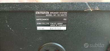 Vendo coppia casse AIWA SX-NAV75, 6ohm. Condizioni più che buone, una botta sul retro su una cassa visibile in foto. Misure 22x26 h30 cm. Non spedisco, non scambio. Prezzo non trattabile. Posso muovermi di qualche km per consegna a mano