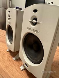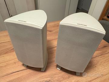 Vendo coppia di diffusori Celestion modello MP1 risposta in frequenza da 70 Hz a 20 kHz, impedenza di 8 ohm e sensibilità di 90 dB. Il cabinet ospita un woofer da 110mm e un tweeter da 25mm a cupola, con una potenza massima sopportata di 150W. Dimensioni: 295 mm (altezza) x 150 mm (larghezza) x 225 mm (profondità). Sono progettati per essere diffusori da scaffale a due vie.