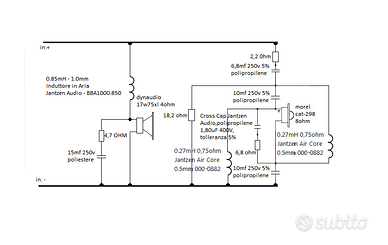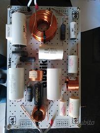 Tutti i componenti utilizzati sono di elevata qualità per un esperienza acustica eccellente; infatti sono montati all'interno, woofer DYNAUDIO 17W75XL 4OHM e tweteer MEOREL cat-298 8ohm , il tutto pilotato da un crossover copiato dalle casse acustiche DYNAUDIO CONTOUR 1.8, per avere il massimo dell'efficienza.