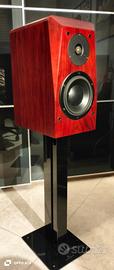 Per la parte estetica sono stati utilizzati due cabinet in MDF 18mm, impreziositi con legno di ciliegio, pannello frontale da 25mm, TUTTO IL MATERIALE NON E' USATO, sono stati costruiti da me, in quanto audiofilo ed attivo hobbysta del settore audio, in pensione dopo 43 anni e tanta esperienza nel campo dell'audio e dell'elettrotecnica.
