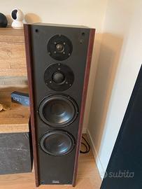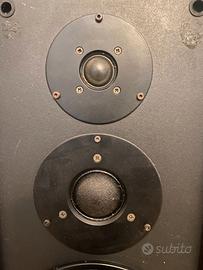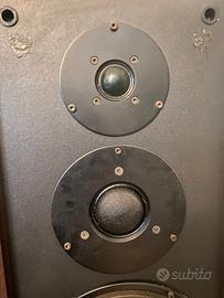Vendo coppia di Dynaudio MSP 330, diffusori storici e ormai difficili da trovare, pensati per chi cerca un ascolto neutro, dinamico e assolutamente fedele alla registrazione. Questa versione monta midrange a cupola – una soluzione tecnica raffinata e oggi quasi scomparsa – capace di offrire una gamma media aperta, naturale e incredibilmente precisa. I woofer MSP sono stati appena ribordati professionalmente, quindi pronti per altri anni di ascolti senza alcun intervento. 🎵 Caratteristiche principali Midrange a cupola ad alta precisione Woofer MSP (Magnesium Silicate Polymer) appena ribordati Tweeter a cupola morbida Dynaudio Cabinet solido, ben smorzato e progettato per ridurre le risonanze Suono neutro, dettagliato, molto musicale Ottima estensione in basso per la categoria Ideali per ascolti di qualità, ambienti medi e piccoli studi 🧩 Condizioni Diffusori perfettamente funzionanti Componenti originali, nessuna modifica Segni estetici del tempo presenti, prezzo adeguato di conseguenza Woofer ribordati di recente