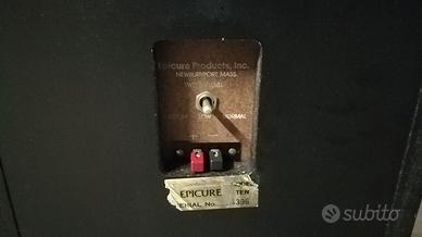 EPICURE 10, casse old school americane Ricordano il sound delle buone AR Due vie, ottimo tweeter a cupola invertita raffreddato al ferrofluido, woofer RCF da 8 pollici in sospensione pneumatica Il selettore posteriore a tre posizioni permette di regolare la presenza degli acuti secondo il proprio gusto ed ambiente Elegante finitura in vinile simil noce Dimensioni cm 56 x 30.5 x 24.5 - 8 Ohm Risposta in frequenza 40 to 20kHz RMS Power 10 to 75 watts (conservative rating) Diffusori musicali, ottima impostazioni timbrica, bassi ben presenti Per farle rendere al meglio basta un buon amplificatore con discreto controllo ed erogazione di corrente, come i classici Rotel, HK, Nad, Yamaha, o anche i moderni classe D, come l'ottimo Fosi V3 Milano Isola - Non spedisco