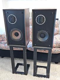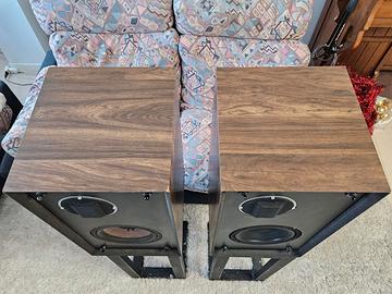 Vendo coppia di diffusori vintage ESS PS8 / Performance Series Model 8, con tweeter Heil Air-Motion Transformer (AMT). Diffusori vintage interessanti e non comuni, con suono molto aperto e veloce in gamma alta. Condizioni estetiche: discrete, con normali segni del tempo e dell’uso, come da foto. Per correttezza segnalo chiaramente che uno dei woofer è stato sostituito in passato con un componente equivalente (si riconosce anche dal diverso colore rispetto all’altro); in uno dei due la membrana del radiatore passivo si era rotta ed è stata riparata Dati principali modello: ESS Performance Series Model 8 / PS-8 tweeter Heil AMT sistema 2 vie con radiatore passivo impedenza nominale 6 ohm sensibilità 94 dB/W potenza ammessa 100 W clean power risposta in frequenza 50 Hz – 20 kHz ±3 dB crossover 2,4 kHz dimensioni: 311 × 559 × 270 mm peso: 14 kg ciascuno Presenti anche le griglie originali. Supporti robusti in ferro zincato e verniciati neri disponibili a parte, oppure inclusi con accordo sul prezzo. Per me è preferibile ritiro a mano con visione/prova, vista età, peso e particolarità dell’oggetto. Disponibile spedizione con pallet e imballo sicuro. Vendita tra privati, visto e piaciuto.