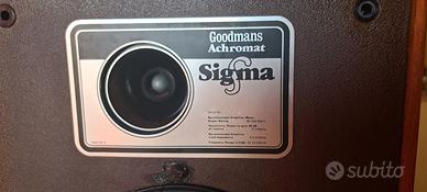 Vendo coppia di diffusori acustici Goodmans Achromat Sigma perfettamente funzionanti. I mid woofer non sono originali. Vendo la coppia a 50 euro. Non spedisco. Solo ritiro in loco.