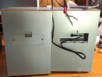Piccoli diffusori Grundig, vintage, probabilmente erano a corredo di qualche impianto HiFi compatto. Curiosa la presenza di un piccolo scomparto sul retro per ospitare il cavetto di collegamento.