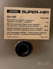Coppia di diffusori compatti a 2 vie in sospensione pneumatica perfettamente funzionanti e in ottime condizioni estetiche anche se con qualche inevitabile segno del tempo. Prodotti nell'epoca d'oro Grundig, se accoppiati alla corretta amplificazione, forniscono eccellenti prestazioni audio. Impedenza 4 ohm - potenza 50 Watt.