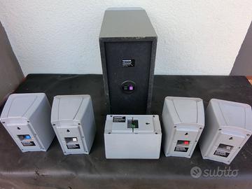 Diffusori homteater con subwoofer passivo dal suono coinvolgente sopratutto il subwoofer. Tutti i componenti funzionanti.