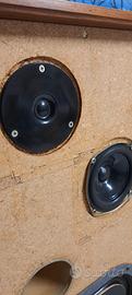 Diffusori che utilizzano i componenti Che la Kef a suo tempo forniva per autocostruttori.Im mobile stesse dimensioni migliori dell'originali.Gli altoparlanti sono quelli della Rogers ls35a più il sub attivo Kef B139.Dalle foto si puo dedurre che gli altoparlanti difficili da trovare sono tenuti nuovi in quanto la tela tolta quasi mai.Documentarsi a quanto vengono venduti i soli altoparlanti.Non ho posto per tenerli.3395205125
