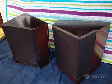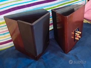 Casse acustiche da collezione, progettate dal rimpianto ing. RENATO GIUSSANI ( ex ESB e collaboratore CIARE, RCF...). In internet potete trovare informazioni approfondite. Utilizza altoparlanti top: woofer SEAS e tweeter SCANSPEAK selezionati AEDON. La particolare forma trapezoidale , per contrastare le onde d'aria stazionarie interne, è un misto di legno massello e mdf lucidato nero a specchio superiormente e grigio frontalmente ( da me riverniciato). Sono presenti alcune sbavature generalizzate nella colorazione ( non nei legni...) dei box. Gli altoparlanti sono perfetti. Naturalmente non hanno i bassi " bum bum" ma un generale suono molto equilibrato e seriamente hi-fi. Sono riservati solamente a veri intenditori e collezionisti. Astenersi pignoli estetici e audiofili incompetenti ed avventurieri. Posso, ma preferirei non spedire ( e comunque NON tramite Subito che vincola le spedizioni a pesi più leggeri ). Grazie