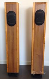 Vendo, esclusivamente per finanziare nuovo progetto audio, meravigliosa coppia di diffusori monovia costruiti artigianalmente in legno di qualità. Basati sullo strepitoso altoparlante CIARE HX100, hanno un suono pieno e caldo che riempie tranquillamente un ambiente anche medio (4x4m) senza costringere all'ascolto frontale delle casse. Basette rialzate sempre in legno colore nero e griglie di protezione metalliche degli altoparlanti, Attacchi RCA di qualità. Fornisco su richiesta documentazione tecnica del CIARE. Peso circa 10 kg a cassa. Dimensioni approssimative HxLXP cm 110x 25 x 30.