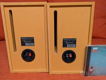piccoli diffusori Onkio in legno, buoni per scrivania o surround.