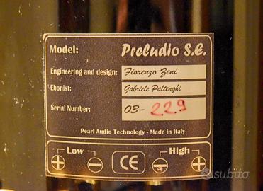 Ecco un paio di introvabili Pearl Audio Preludio S.E, diffusori del vero artigianato italiano, concepiti dall’ Ing. Fiorenzo Zeni della Pearl Audio di Trento (ora Pearl Evolution giusto per comprendere il calibro di ciò di cui parliamo), completi dei loro massicci stand originali con i quali raggiungono un peso di 50kg la coppia.