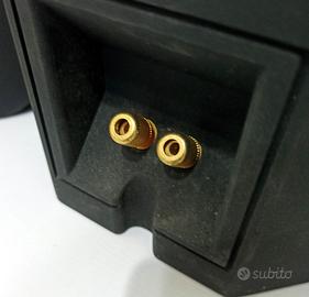 Diffusori RCF Monitor 5S Professionali HI-FI Altoparlanti professionali, 2 vie passivi, progettati per applicazioni musicali sia all'interno che all'esterno. Gli altoparlanti hanno un woofer in Fibra di Carbonio da 5 " e un tweeter a cupola morbida da 0,75 " che offre un suono equilibrato e preciso. Molto compatti dal peso di 4 Kg ciascuno, e costruiti con materiali resistenti al trasporto. System specifications * Frequency range (–10 dB): 65 Hz-20 kHz * Frequency response (–3 db): 100 Hz-19 kHz * System sensitivity: 87 dB, 1w@1m * Nominal impedance: 4 Ohm * System nominal input power: 175 Watt IEC * Crossing frequency: 2.5 kHz, 12 dB/eighth * Input connectors: Banana terminals plated in gold * Dimensions ( H x L x P ): 262 mm x 182 mm x 160 Transducers * Low frequency: 5 "(130 mm) carbon fiber woofer with 1" (25 mm) coil * High frequency: dome tweeter with 0.75 "(19 mm) horn, Ferrofluido® refrigerated I Monitor sono perfettamente funzionanti ed in buone condizioni estetiche. Ovviamente graffietti e normale usura di utilizzo. In dotazione anche le griglie di protezione in acciaio perforato. SPEDIZIONE DISPONIBILE O CONSEGNA A MANO IN ZONA CAGLIARI