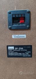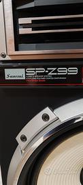Vendo diffusori Sansui modello SP-Z99 ai quali sono stati sostituiti i midrange, i super tweteer e le membrane delle trombe, il tutto con ricambi di qualità e potenza superiore a quelli originariamente installati. Purtroppo é quasi impossibile reperire i ricambi originali, trattandosi di diffusori che anno piú di 40 anni, attualmente suonano egregiamente, possibilità di ascolto presso la mia abitazione